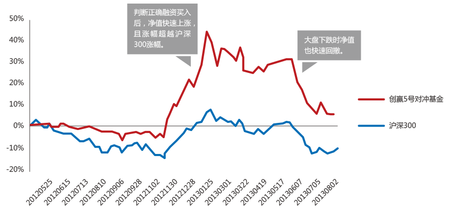 由于多空仓策略可以在期指市场用少量的保证金附加一定倍数的杠杆,导致净值振幅被扩大,