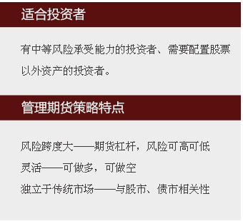 只投资于:金融期货、期权与衍生产品、固定收益与利率、外汇与货币、以及金属、商品期货等。