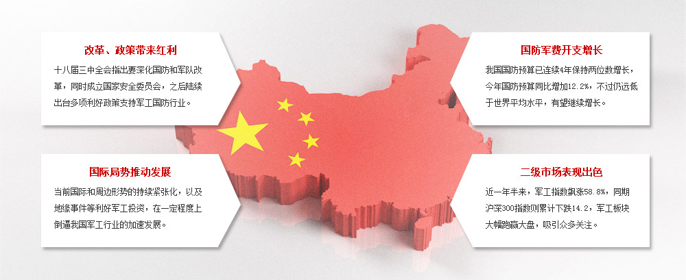 今年以来,随着多项利好国防军工行业的政策出台,军工板块强劲上扬。未来,随着国家安全战略升级、国防军费开支增长和军工改革进一步落实,国防军工行业发展空间将更加广阔,军工主题基金迎来历史性的投资机遇!