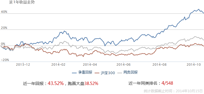 根据统计自成立以来该基金的整体回报率达到了115.23%!今年以来跑赢大盘26.19%!同类548只中排名第8!数据截止时间:2014年10月15日