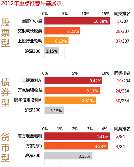 2012年好买重点推荐基金,业绩均位于同类基金的前13%,收益超越沪深300指数1.13%-13.73%.