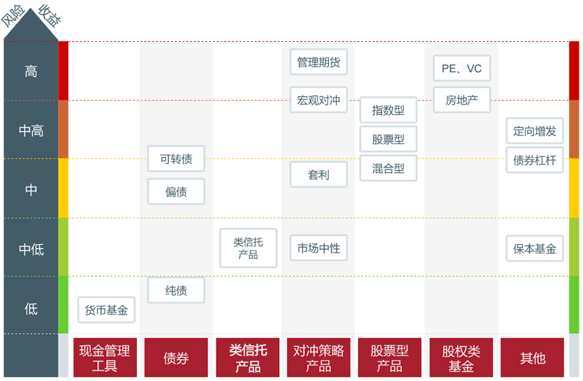 国内的杠杆基金属于分级基金的杠杆份额(又叫进取份额)。分级基金是指在一个投资组合下,通过对基金收益或净资产的分解,形成两级(或多级)风险收益表现有一定差异化基金份额的基金品种。