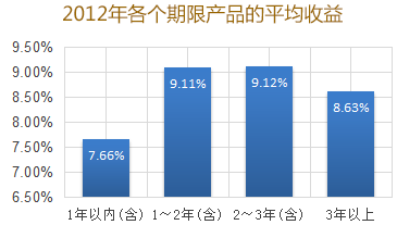 从各期限产品的收益率来看,一年期(及以下)产品的预期年化收益率为,一年(不含)~两年期产品平均收益率为9.11%,两年(不含)~三年期产品平均收益率为9.12%。