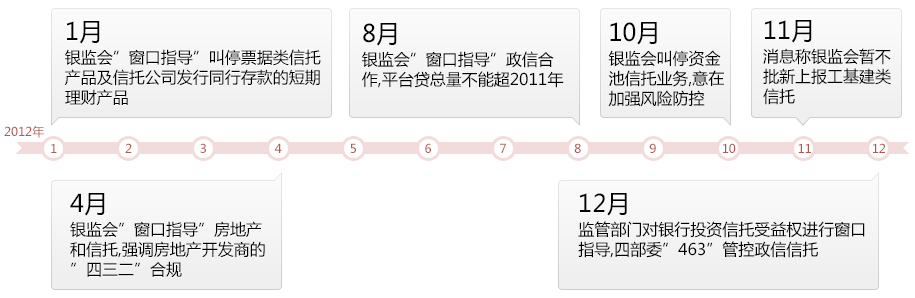 ♦ 随着资产规模的迅速膨胀和产品创新的不断深入,信托机构的研发和资产管理能力受到挑战。一些原本在信托行业“刚性兑付”规则下包裹严实的兑付风险问题,因为涉险项目规模越来越大,开始逐渐暴露。2012年,吉林、中诚、中融、中信等多家信托公司因产品兑付被市场人士发出“预警”。