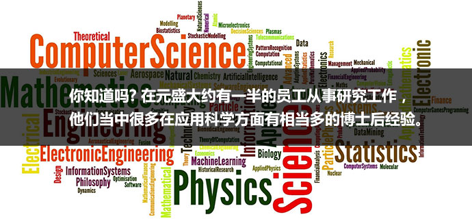 上图代表了元盛科研人员的学位学科,字体的大小代表了拥有该学位的员工人数的多少
