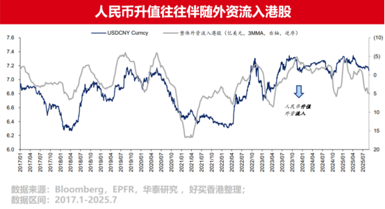 人民币升值不仅推动中国资产进一步重估,更将提振全球流动性,加速全球经济“再平衡”,其中离岸人民币资产将展现更大弹性。历史上人民币升值周期中,港股往往展现较高估值弹性。