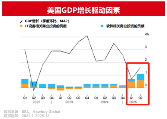 美国经济分析局(BEA)统计数据显示,2025年软件与IT设备相关商业投资已成为GDP增长的重要动力。