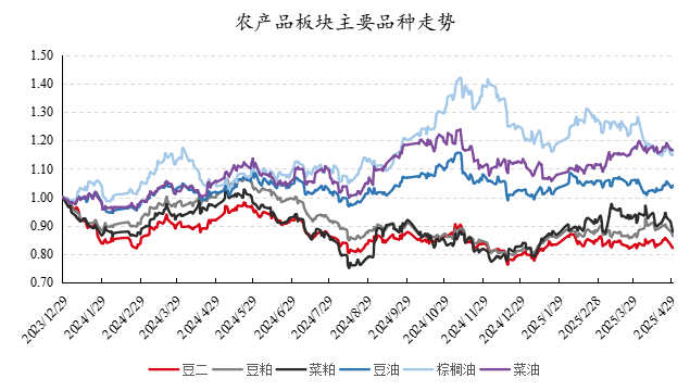 农产品板块,普遍下跌,菜油好于豆油好于棕榈油。