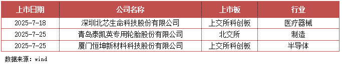 前两周,共有4家企业上市,其中上交所主板2家、深交所创业板1家、港交所1家。