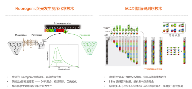 公司具备完善的产品生产和研发体系,拥有完备的化学和酶原材料生产基地、GMP试剂生产车间、仪器生产工厂,以及光学、流体、算法团队,依托Fluorogenic荧光发生和ECC纠错编码两项核心测序技术,从技术源头创新,精雕细琢,打造自主、优质、开放的基因测序平台。
