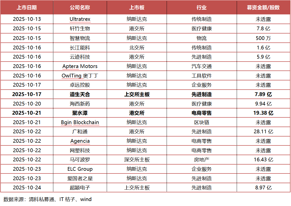 上两周,共有19家企业上市,其中上交所主板2家、深交所主板1家、北交所1家、港交所5家、纳斯达克交易所10家。