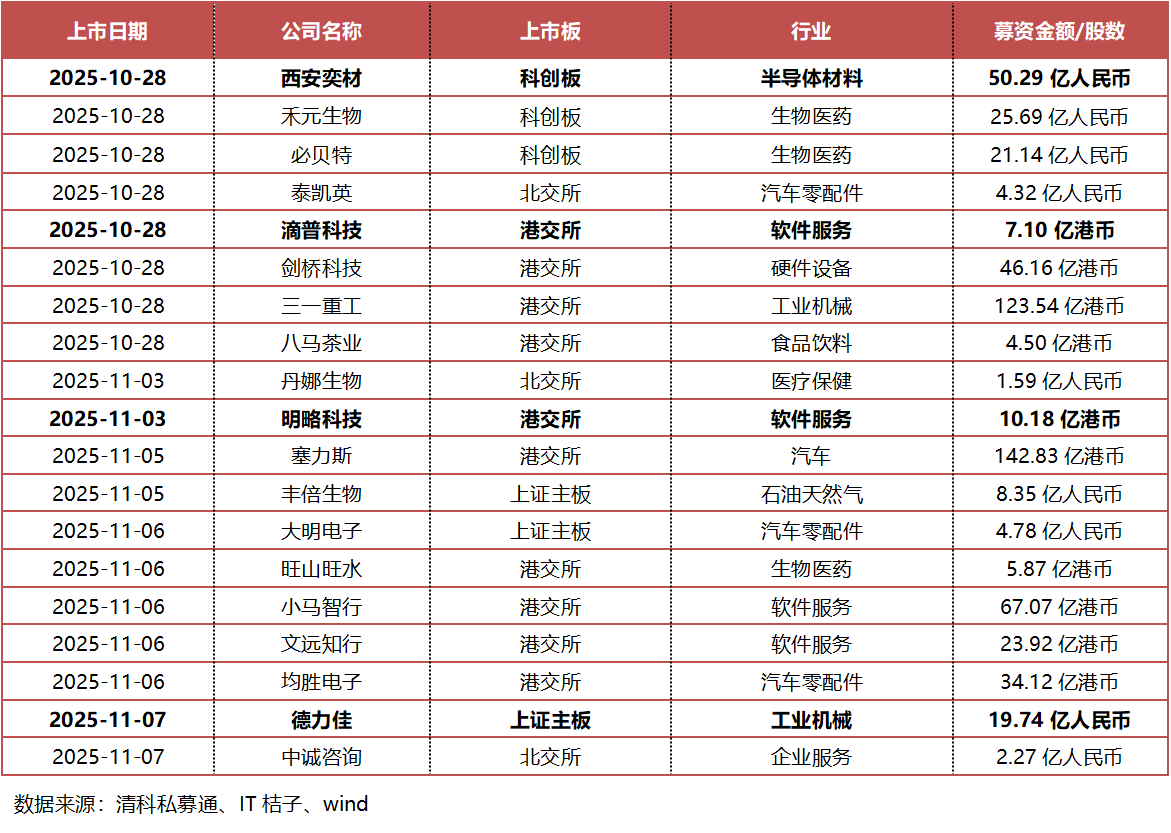 上两周,共有19家企业上市,其中上交所主板3家、上交所科创板3家、北交所3家、港交所10家。