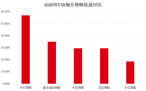 总结以上,2020年,在A股市场的巨震中,CTA基金风险对冲作用明显。国内疫情、全球疫情造成的股市回撤中,CTA基金实现正收益。且在疫情后的大宗商品趋势性行情中,CTA策略表现较好,年内收益亮眼。细分策略方面,中长周期趋势跟踪策略成为最大赢家。