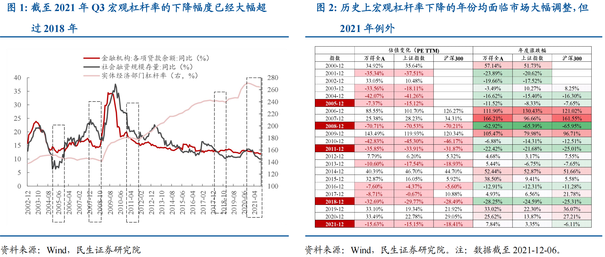 1.1 2021年:宏观杠杆率大幅下滑,但市场未下跌
