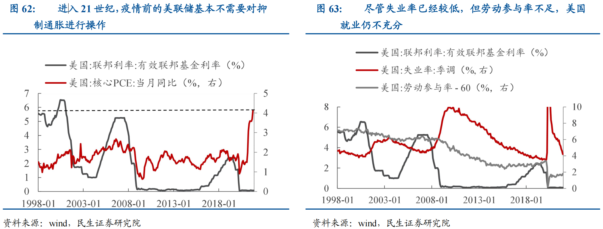 2022年,在已经落地的缩债(taper)与可能到来的加息中,美国进入疫情后的货币政策收紧周期,也将对A股产生影响。进入21世纪,疫情前的美国核心PCE基本不会突破2%,美联储基本不需要对抑制通胀进行操作,美联储的收紧主要是在充分就业情况下抑制过热。本次美联储收紧最大的不同在于目的是为了抑制走高的通胀,而非因为就业充分后抑制经济的过热。我们对2022年的美国通胀进行了测算,主要的压力来自于住房成本的上升和出行的修复,预测美国核心CPI在2022年一季度达到高点,2020-2022年的平均值达到3.1%,美联储进一步收紧的压力近期在增大。与此同时,美国经济中“滞”的因素也在逐渐出现,收紧难以形成趋势,美国PMI已经走入下行通道,就业仍不充足。在这一背景下,尽管我们相信2022年A股指数有可观收益率,但美国进入信用周期的收紧却会让预期中的“春季躁动”难以如期而至。
