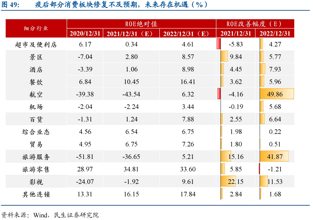 自2016年后,消费板块迎来慢牛行情,然而在板块繁荣的背后,存在着大量不在核心驱动逻辑(地产→城镇化→消费升级)内的消费资产处于滞涨格局之中,而估值同样处于历史低位,这类股票集中于大众消费板块中,如轻工制造(家具、家居、文娱轻工)、商贸零售(百货、超市)与休闲服务(景区、电商及服务)等。部分投资者认为,2022年地产政策的边际松绑会带动消费核心资产的景气度回升,然而需要注意的是,在未来随着乡村振兴、共同富裕等政策的不断落实与推进,如果相信未来经济结构转型与增长引擎的切换,那么消费的转型也将不可避免:过去地产与城镇化驱动的消费逻辑,应该向更多县域消费与中低端人群消费转移。而另一方面,疫情过后受损严重的部分消费板块在2021年的修复力度不及预期,未来业绩进一步改善具备较强确定性,其中同样存在大量机遇,因此在未来过去大量滞涨的消费板块价值有望得到重估。