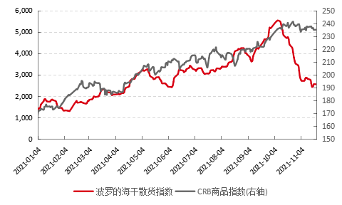 从图一可以看到,全球来看,今年十月中旬以前这两个指数总体是一起震荡往上走,期间受到通货膨胀预期、经济复苏需求增加、疫情反复等多个因素推动或干扰。