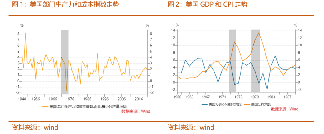 60年代的大规模财政刺激和军费开支使得美国通胀持续上行,但同时劳动生产率开始下降,总需求大于总供给,工资物价螺旋式通货膨胀现象已经出现。后来发生了石油危机,才导致通胀雪上加霜,反过来伤害经济增长。