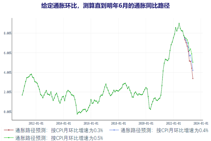 从年初到现在美联储经历了300bp以上的罕见高速加息,利率从0附近提升到现在4.5%左右。现在市场普遍认为加息的终点在5%附近,明年下半年可能会降息。随着通胀和经济的下行,美联储态度预计会进一步软化,12月加息50bp并透露下一次加息或在25bp,加息进度将放缓,虽然美联储仍把加息终点放的非常高,且认为加息时间会更长、持续时间更久,但是市场已经不相信这一点,因为市场认为经济和通胀已经在大幅下滑,没有可能继续保持较强加息节奏和力度。