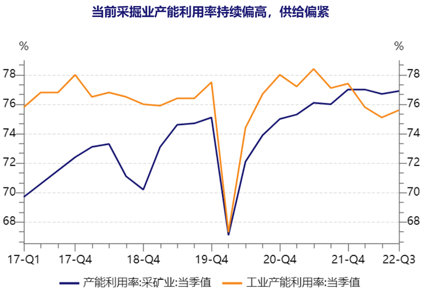 当下现实需求较弱,但采掘业产能利用率持续偏高,说明供给偏紧,这在过去是没有遇到过的情况。需求弱,经济差,但商品价格下跌不畅,几乎每一个重要商品都存在供给问题。一旦经济明显复苏,商品价格大概率会涨。