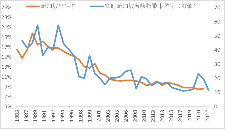 新加坡出生率与富时新加坡海峡指数市盈率走势