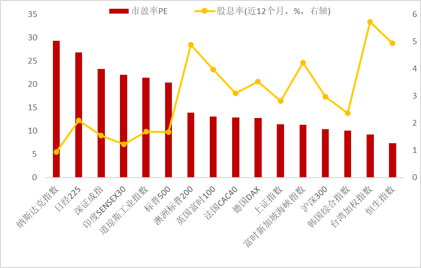 就中国经济而言,尽管GDP增速相比过去已经显著回落,但比欧美还是要快不少,但A股市盈率水平已经明显低于欧美股市。如截至10月末,沪深300的平均市盈率已经跌至10倍,股息率接近3%,但我国的一年期存款利率只有1.5%;而美国的标普500指数对应的平均市盈率为20倍,股息率也只有1.6%,美联储的基准利率水平是3%-3.25%;印度SENSEX30指数的平均市盈率为22倍,股息率只有1.2%,而印度央行的基准利率高达5.9%。