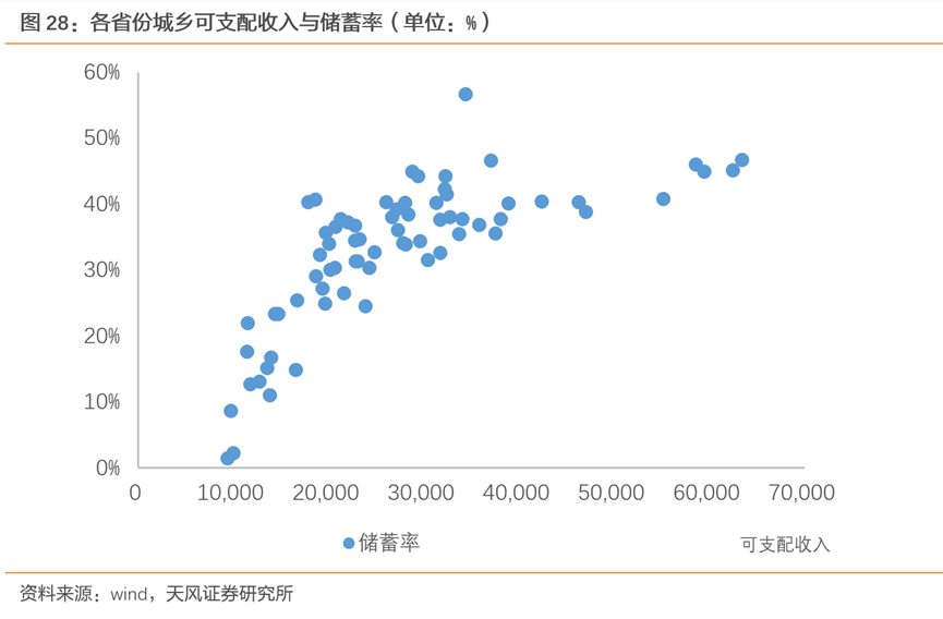 从储蓄率的分布来看,国内居民部门的超额储蓄主要集中在城镇人群/高收入人群手中。