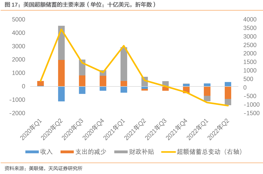 对应于疫情以来美国居民的超额储蓄来源也可以分为两部分。