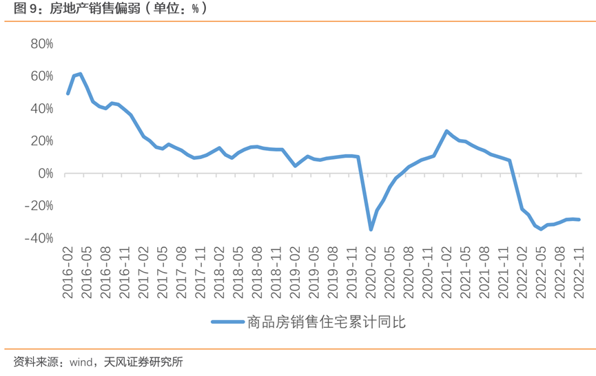 从预期数据上看,目前居民部门的收入预期依旧偏弱,四季度央行调查问卷数据显示,2022年4季度居民部门收入感受指数和就业感受指数相比于三季度分别下滑3.2个和2.3个百分点,收入信心指数和就业预期指数分别下滑2.1个和2.3个百分点,仅有44.4%和43%。考虑到明年1季度国内尚处于本轮疫情的尾声、海外需求下滑拖累出口等,居民收入和信心的修复或需要更长的时间,这也会对超额储蓄释放形成制约。