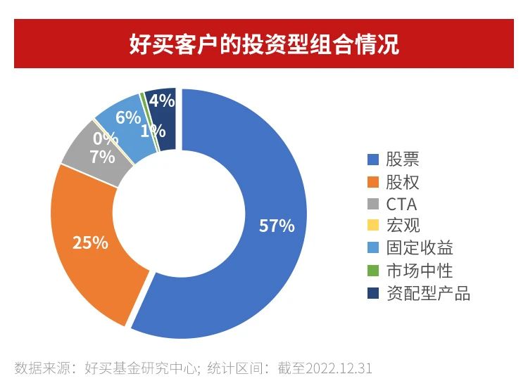 今天我们重点探讨投资型产品的均衡配置问题。下面这张图是好买高端客户资产总量600亿左右的大致配置,57%是股票类的,25%是股权类的,类固收有6%,市场中性有1%,CTA有7%等等。那么我们要思考一个问题:假设这600亿资产是一个平衡性客户的,这样的一个配置,健不健康?
