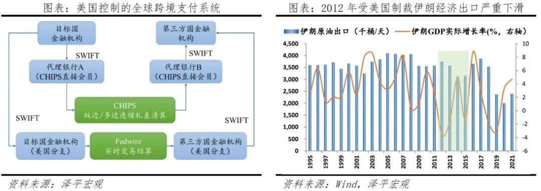 美元霸权为美国企业带来丰厚利润、独立自主的货币政策,赋予美国收割全世界的权利。为维持美元优势,美国甚至发动经济制裁、地缘战争等方式,遏制和打压任何可能挑战美元地位的苗头。1999年欧元诞生之初,美国向欧洲腹地科索沃发动战争,打击国际资本对欧元的信心;2002年中日构想货币互换和“亚元”,美国以钓鱼岛事件挑衅,“亚元”化为乌有。2003年伊拉克宣布在石油贸易中改用欧元结算石油贸易,触动美国利益,美国以大规模杀伤性武器为由发动伊拉克战争,战后临时政府宣布石油出口改回美元结算。近年来,美国实施“美国优先”战略,滥用美元霸权和金融制裁,“去美元化”诉求愈发强烈。以2022年俄乌战争为例,美国同欧盟、英国、加拿大共同发表声明,宣布禁止俄罗斯部分银行使用SWIFT系统。