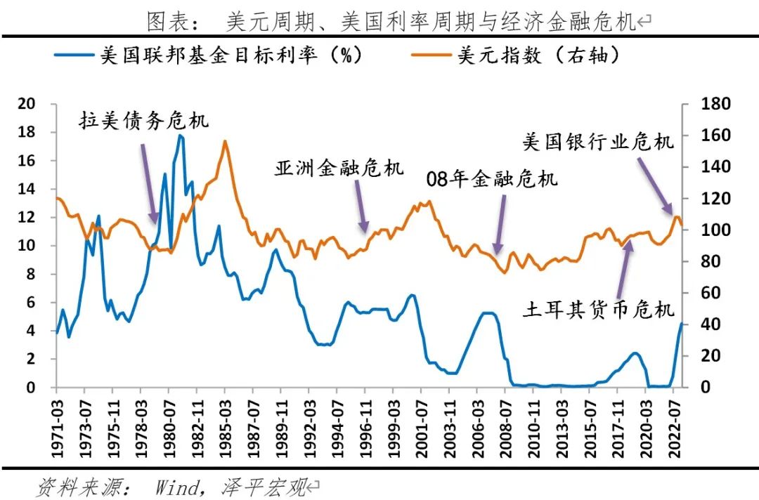 二是从美国立场来看,美国综合国力相对下降,“美国优先”战略收缩,侵蚀美元信用。美国GDP占世界比重从1960年30%下降至2019年22%,以往全球治理体系中,美国往往充当“世界警察”角色,但特朗普上台以来奉行“美国优先”政策,肆意修改国际秩序规则,动摇和破坏多边、开放的国际秩序。疫情爆发后,美联储前期直升机撒钱超发货币、后期激进加息收紧货币,引发银行业危机,对美元信用产生负面冲击。