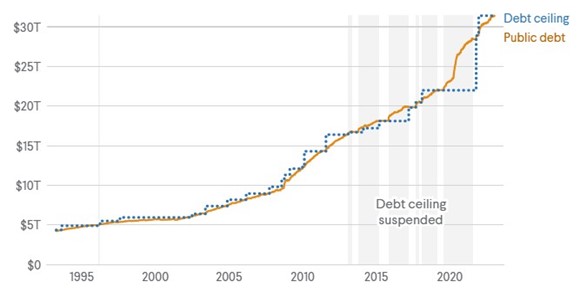 1月19日,美国联邦政府债务规模触及31.4万亿美元的法定债务上限。当时为避免债务违约,美国财政部随即开始采取一些“非常规措施”,比如暂停某些例行开支以维持关键支出等,并以此来换取解决债务上限问题的时间。