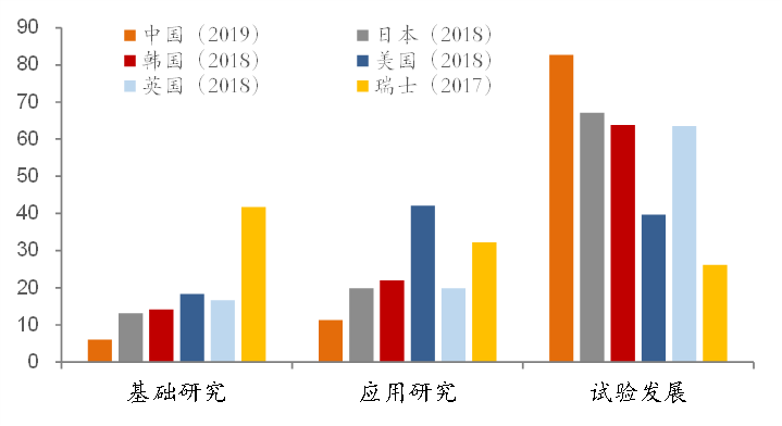 图表:全球主要国家研发投入结构(%)
