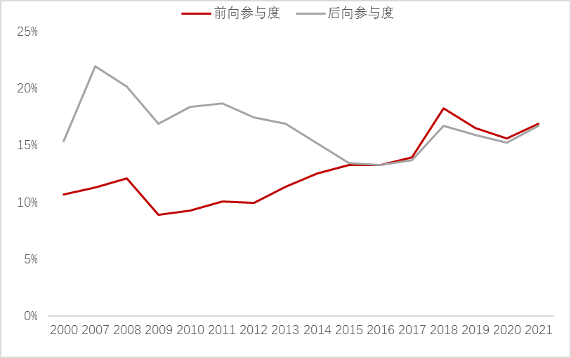 图表:我国制造业在全球价值链的参与度
