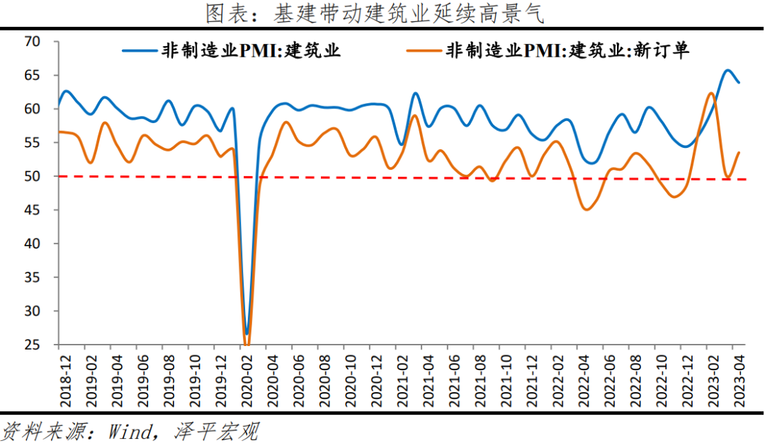 服务业加快恢复,建筑业高景气。服务业商务活动指数为55.1%,低于上月1.8个百分点,主因上月高基数;建筑业商务活动指数为63.9%,较上月回落1.7个百分点,各地工程项目集中开复工,施工进度加快。