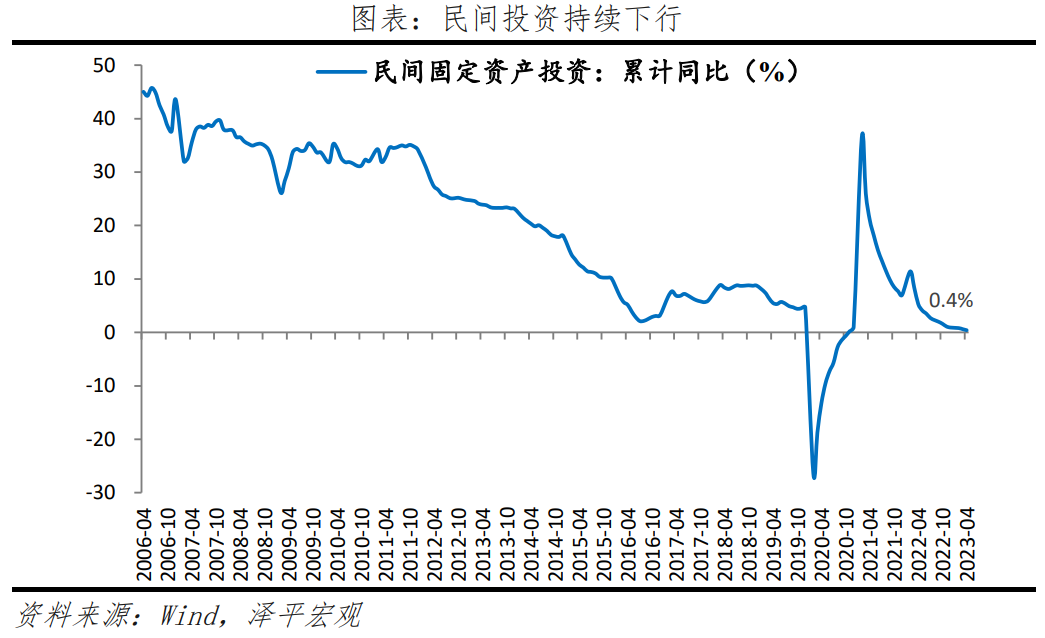 4月固定资产投资(不含农户)当月同比增长3.6%,较3月下降1.1个百分点,两年复合增速为-8.3%,在2022年4月低基数前提下增速仍有所下行。分投资主体看,1-4月民间固定资产投资和国有控股企业固定资产投资累计同比分别为0.4%和9.4%,较1-2月分别下滑0.2和0.6个百分点。