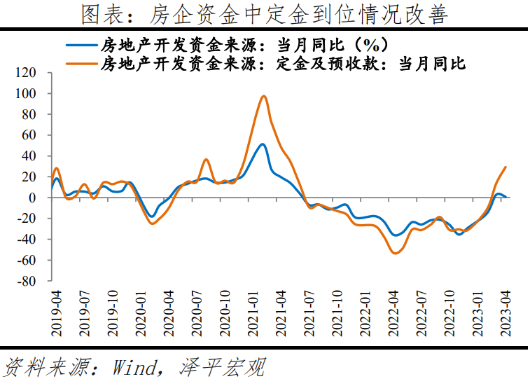 1)房地产销售环比回落,投资增速进一步下行,房地产市场尚未走出困境,需要稳楼市。4月商品房销售面积为-11.8%,较3月下降8.4个百分点。4月房地产投资同比增长-16.2%,较3月下降9.0个百分点;新开工、新增施工和竣工面积同比分别为-28.3%、-45.7%和37.3%。4月房地产开发资金来源同比0.8%;其中,国内贷款和自筹资金下行,反映投资意愿不强。