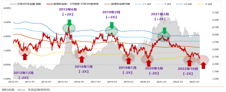 从股债收益差数据(下图)来看,股债收益差又回到了接近-2X 标准差的位置,可以说已经反映了非常悲观的经济和基本面预期。与历史的2016年1月、2018年底、2020年3月及2022年10月等多次历史底部时发出类似的信号。