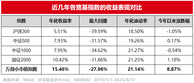 而对标万得小市值指数的小市值指增,永远布局A股中小于100亿市值的公司,压在了最尾部的位置。