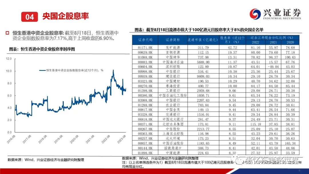 恒生香港中资企业股息率:截至8月18日,恒生香港中资企业指数股息率为7.17%,高于上周收盘的6.90%。