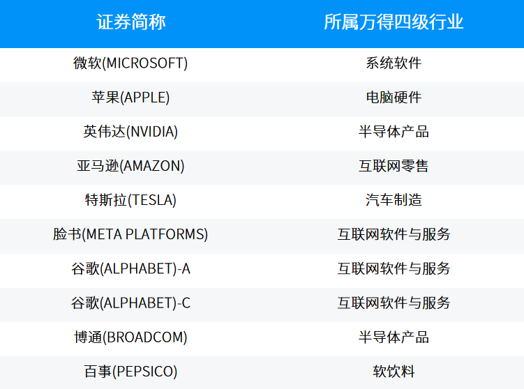纳斯达克100指数前10大成分股展示