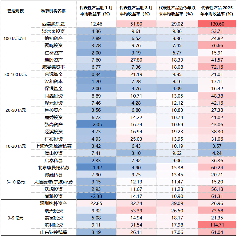 我们通过对重点跟踪的私募机构进行深度梳理,精准捕捉各规模梯队中的领跑者,为你洞察2026年市场环境下的超额收益来源。