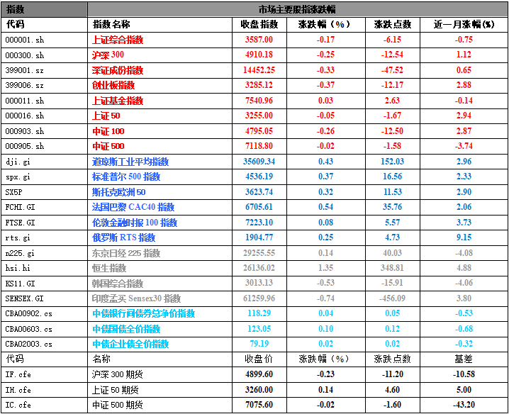二、指数涨跌