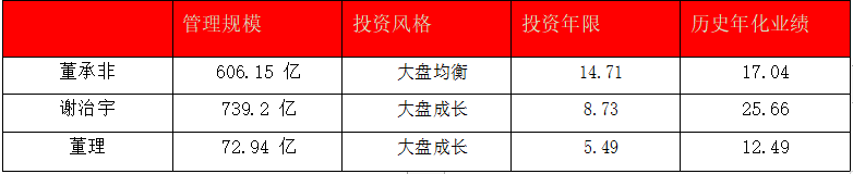(1)从管理规模上看,谢治宇和董承非属于同一水平,但投资风格存在明显差异。