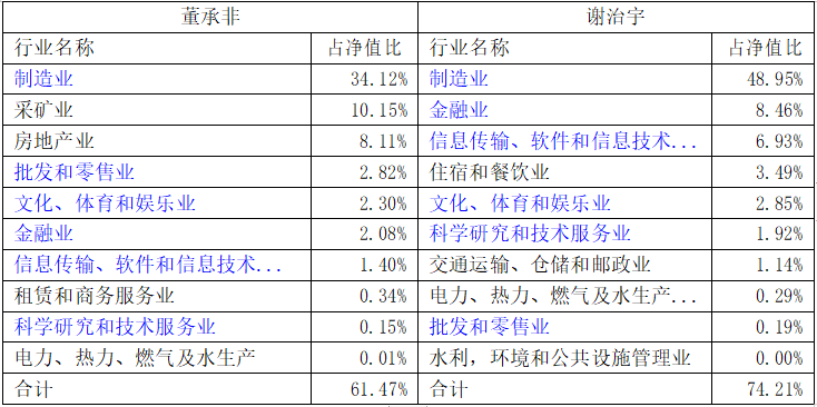 董承非和董理行业偏好和行业集中度差别很大。