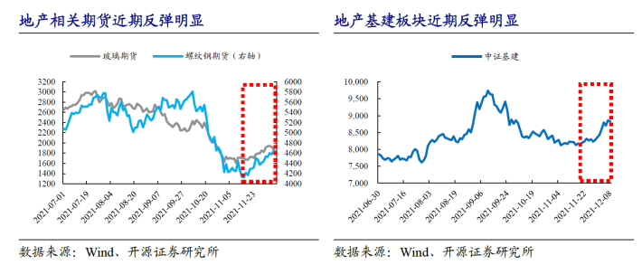 1、业绩真空期,板块主题的轮动以政策和预期为主线,近期利好地产的政策频出,市场对地产的边际改善更加乐观:11月份,各地全国多个城市出现银行个人房贷放松的消息,而上周的政治局会议对地产表述积极,让市场对房地产的边际宽松更加乐观,11月中旬以来,螺纹钢、玻璃等地产相关期货反弹明显,地产基建板块也有较大涨幅。