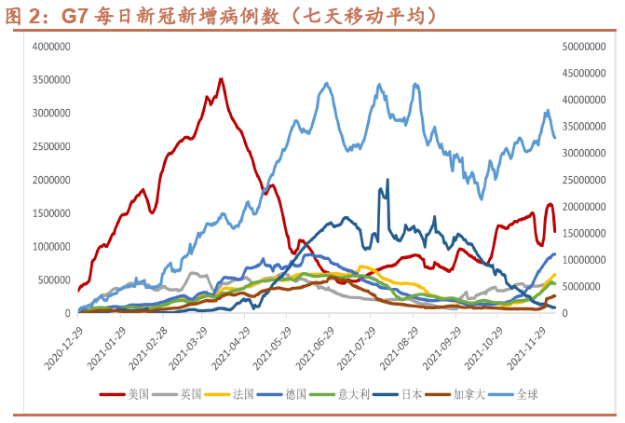 Omicron 推高全球新增疫情,加剧供应链问题压力。虽然美国12 月1 日宣布检测出Omicron 病毒,但目前Delta 仍是主要的关注病毒变体,Omicron在美占比不足0.1%。由于北半球进入冬季,人们在室内的活动时间延长,11月以来美国患病人数有所反弹。据美国疾控中心(CDC)统计:截至12 月9日,美国约2.4 亿人(约占总人口的71.5%)至少接种了一剂疫苗,2 亿人(约占总人口的60.5%)已完全接种了疫苗。财政部长耶伦表示,Omicron 可能会加剧供应链问题并抑制需求,对全球通胀的影响难以预测。