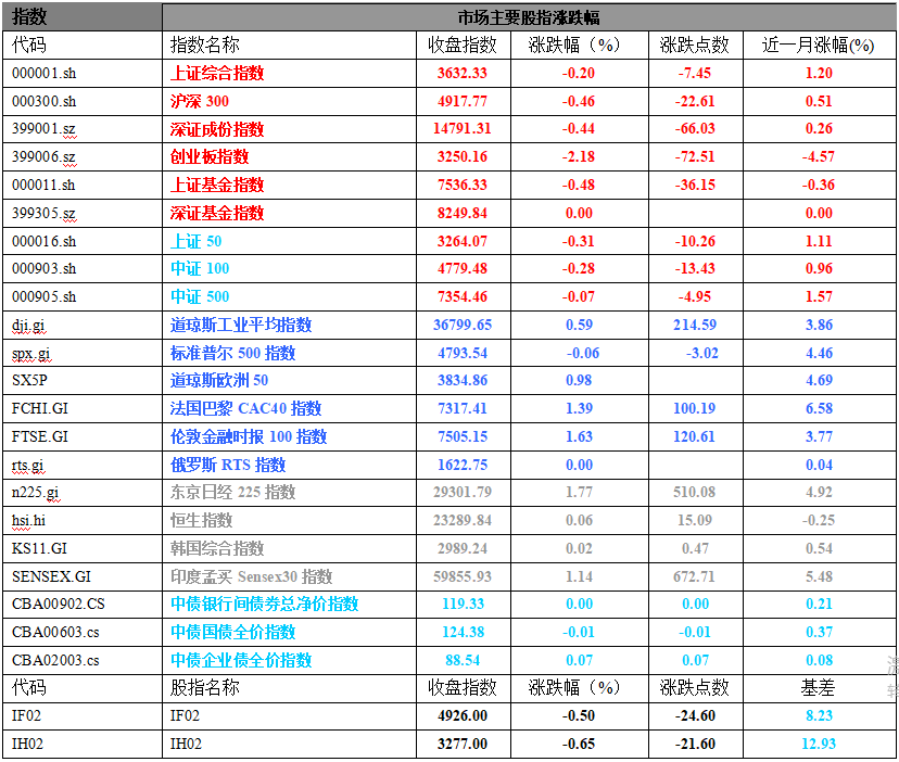 二、指数涨跌