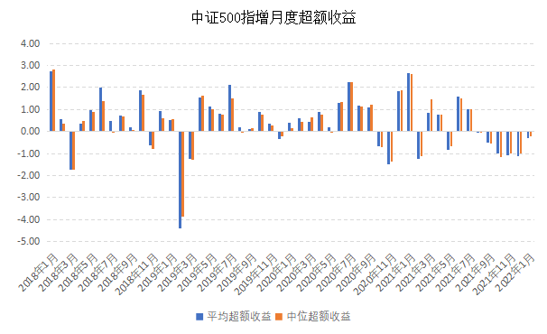 衰退背后的逻辑,除了部分产品规模增大带来的打新收益沉降外,更多来自于2021年下半年表征风格的迅速切换和交易拥挤,这点在量化私募更集中的500产品上体现的最为显著,站在当前时点看,500指增的超额收益目前已经连续负值长达5个月的时间(期间累计超额回撤均值约为3.7%),这在公募500指增的历史上是首次出现(以近50个月的时间窗口看,此前月度连续负超额最长仅2个月)